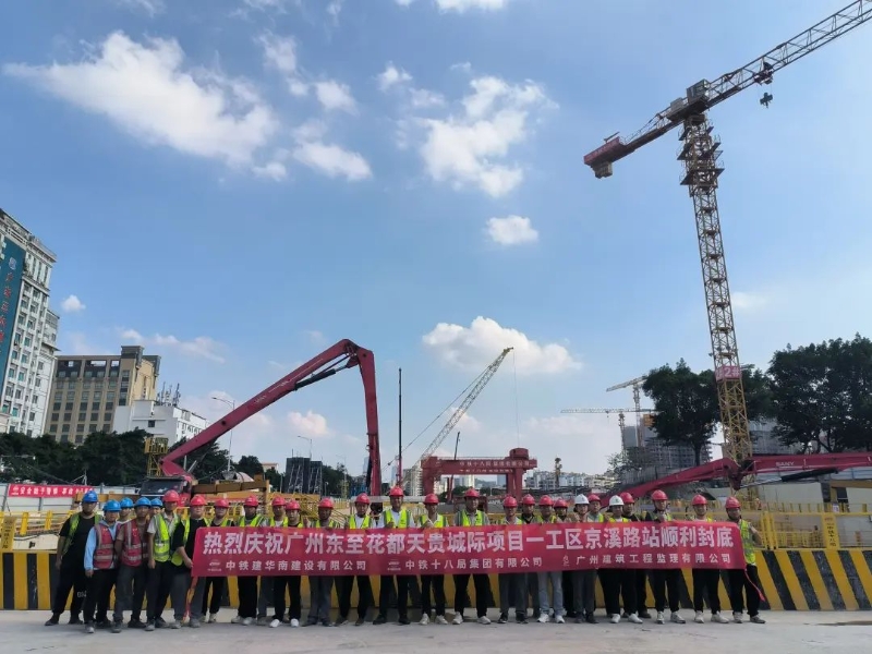 廣花城際項目京溪路站主體結構基坑順利完成封底