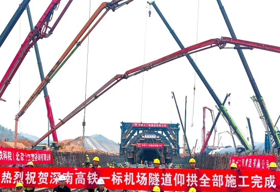 2月26日,隨著最后一方混凝土澆筑完成,深南高鐵機場隧道仰拱施工全面告捷,標志著深南高鐵建設取得新進展。仰拱是隧道結構的基礎部分,對隧道的穩定性和耐久性起著關鍵作用。機場隧道仰拱的完工,為后續的隧道施工及全線通車奠定了堅實基礎。在施工過程中,項目團隊精心組織、科學施工,嚴格把控施工質量和安全,采用先進的施工工藝和技術,確保了工程的順利推進。