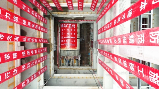 廣花城際項目一工區(qū)廣京區(qū)間右線"廣花?鐵兵2號" 土壓 / 泥水雙模盾構(gòu)機(jī)在京溪路站始發(fā)