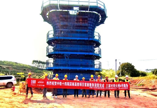 3月23日,深南高鐵項(xiàng)目三家村特大橋4號(hào)墩順利完成混凝土澆筑,標(biāo)志著項(xiàng)目四工區(qū)(中鐵十四局管段)首座墩身澆筑成功,為該標(biāo)段橋梁工程建設(shè)按下“加速鍵”。作為全線重難點(diǎn)工程之一,該橋全長(zhǎng)853.37米,需完成200根樁基及25個(gè)承臺(tái)墩柱,采用預(yù)制簡(jiǎn)支箱梁架設(shè)工藝。首墩澆筑成功不僅為后續(xù)橋梁施工樹立了標(biāo)準(zhǔn)化樣板,更為復(fù)雜地質(zhì)條件下的墩身施工積累了寶貴經(jīng)驗(yàn)。